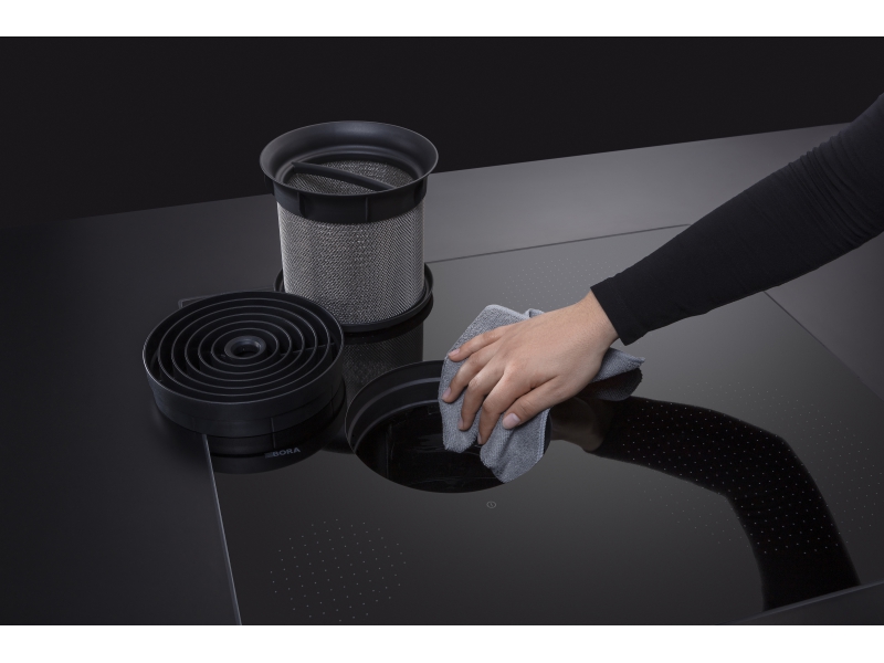 Dzięki kompaktowym wymiarom płyta BORA S PURE pasuje nawet do najmniejszej kuchni, rozwiązując wszystkie Twoje dylematy dotyczące przestrzeni. Zintegrowany i automatycznie sterowany wyciąg BORA S PURE w pełni usuwa opary i zapachy podczas gotowania. Unikalny asymetryczny układ otworu wyciągu umożliwia gotowanie na czterech polach grzewczych o różnej wielkości. Dzięki temu niezwykłemu i nowoczesnemu wyglądowi BORA S PURE udoskonala każdą kuchnię. Suwak dotykowy sprawia, że wszystkie funkcje operacyjne są łatwo dostępne za dotknięciem palca – a dzięki cichemu wentylatorowi wyciąg jest ledwo słyszalny nawet przy dużej mocy.
